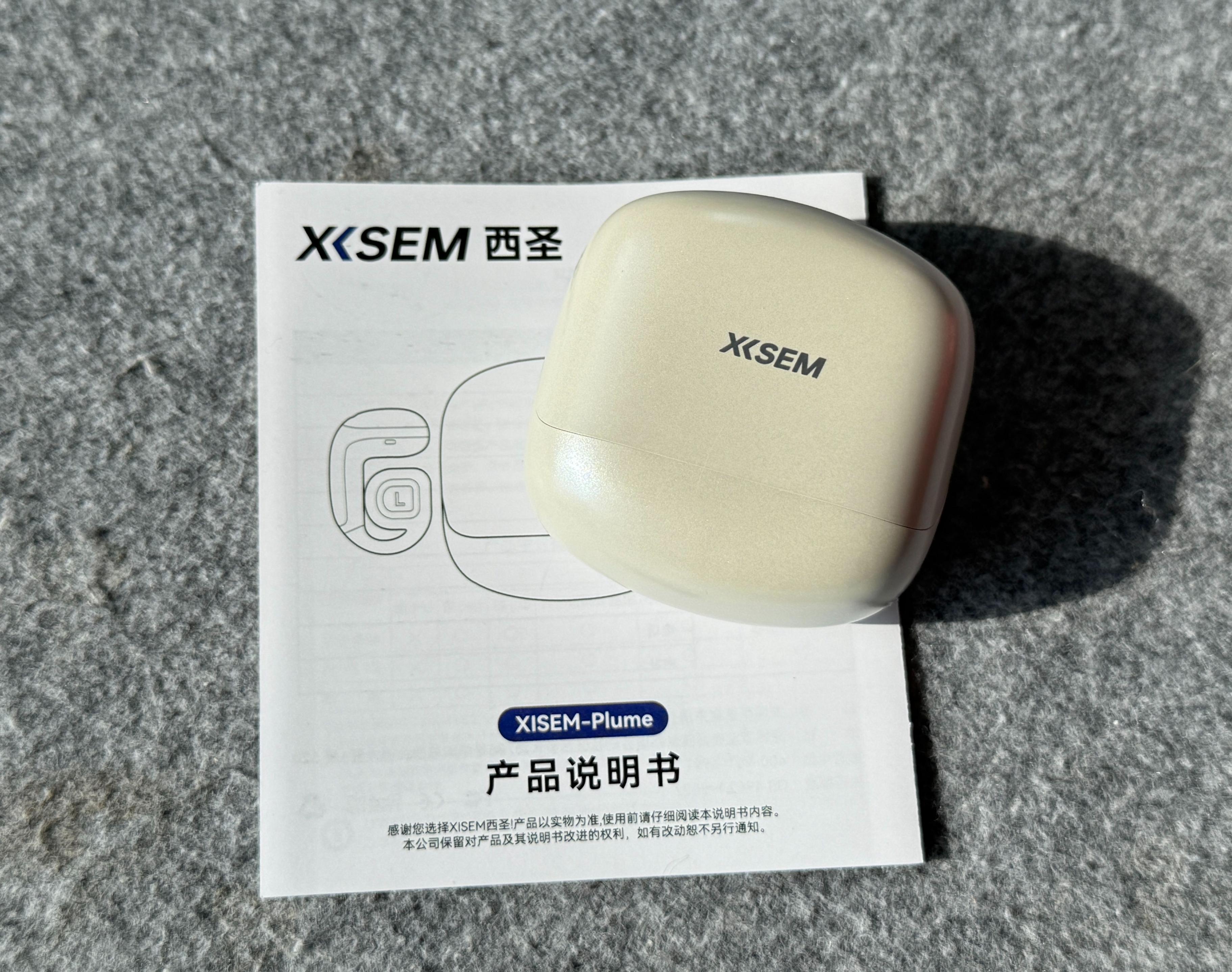 西圣 Plume 在外观设计上融合了时尚感与人体工学考量。整体造型简约流畅,线条圆润柔和,给人一种精致的感觉。耳机主体采用轻量化设计,单耳仅重 5.9g,拿在手中几乎感觉不到重量。搭配柔性记忆材料与亲肤记忆硅胶材质,触感细腻亲肤,就像婴儿的肌肤一般柔软。而且它还能适配不同耳廓形状,无论你的耳朵大小如何,都能找到舒适的佩戴方式。
