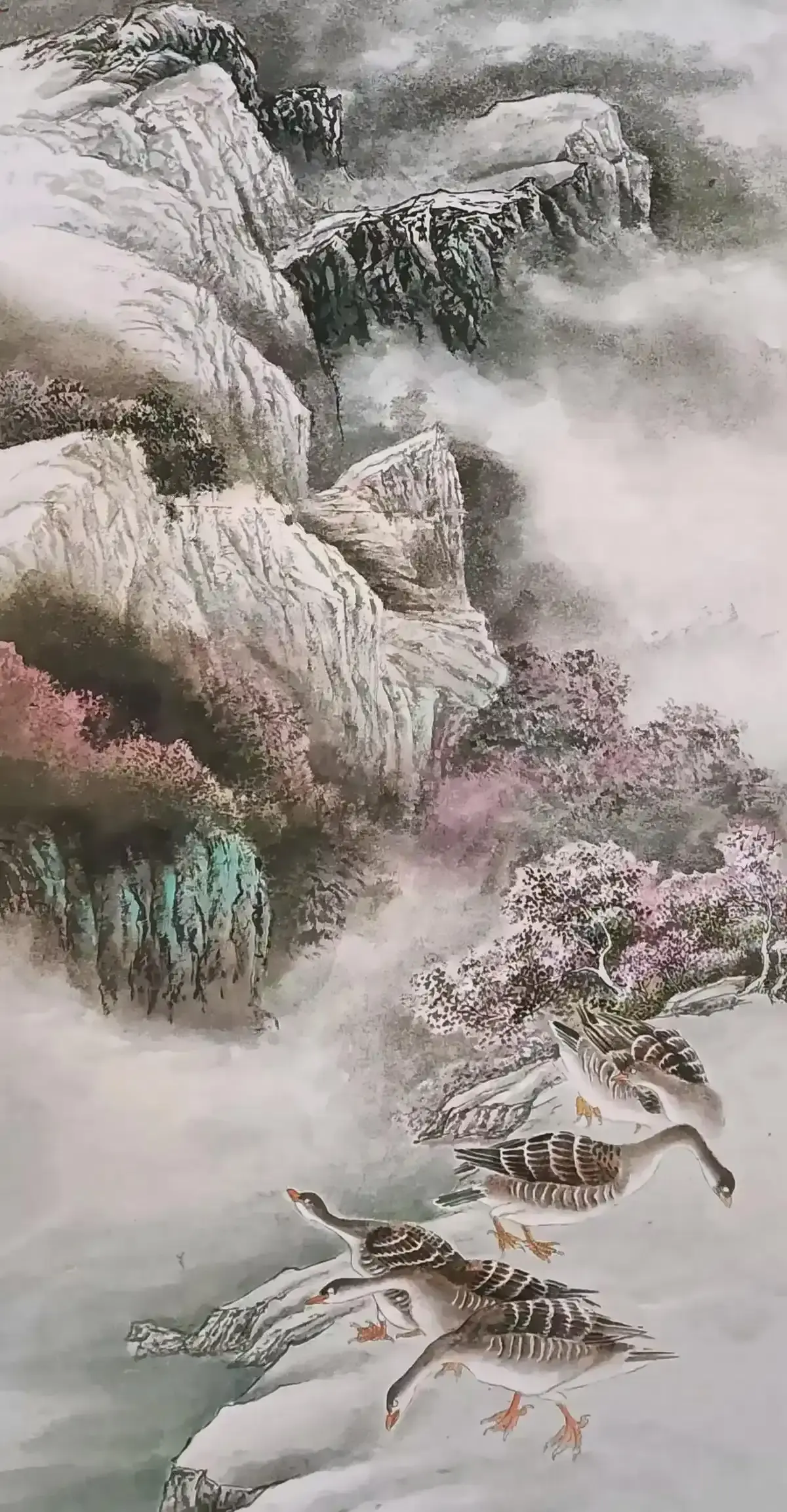 在中国画的审美体系中,“大境界山水花鸟画”与“翎境画”代表了一种高层级的艺术追求。欣赏这类作品,需超越对物象外形的简单评判,进入一个融合了技法、空间与哲学思考的宏大艺术世界。