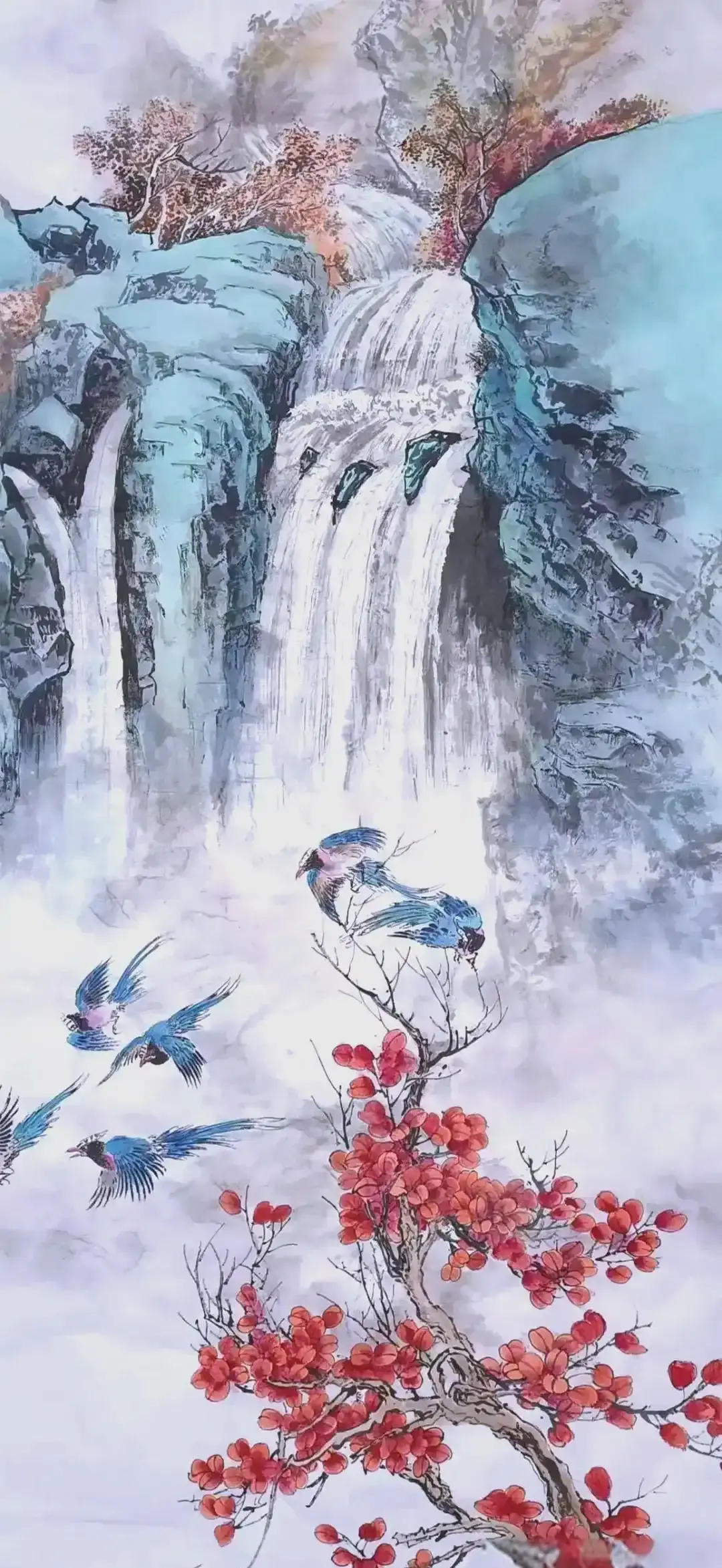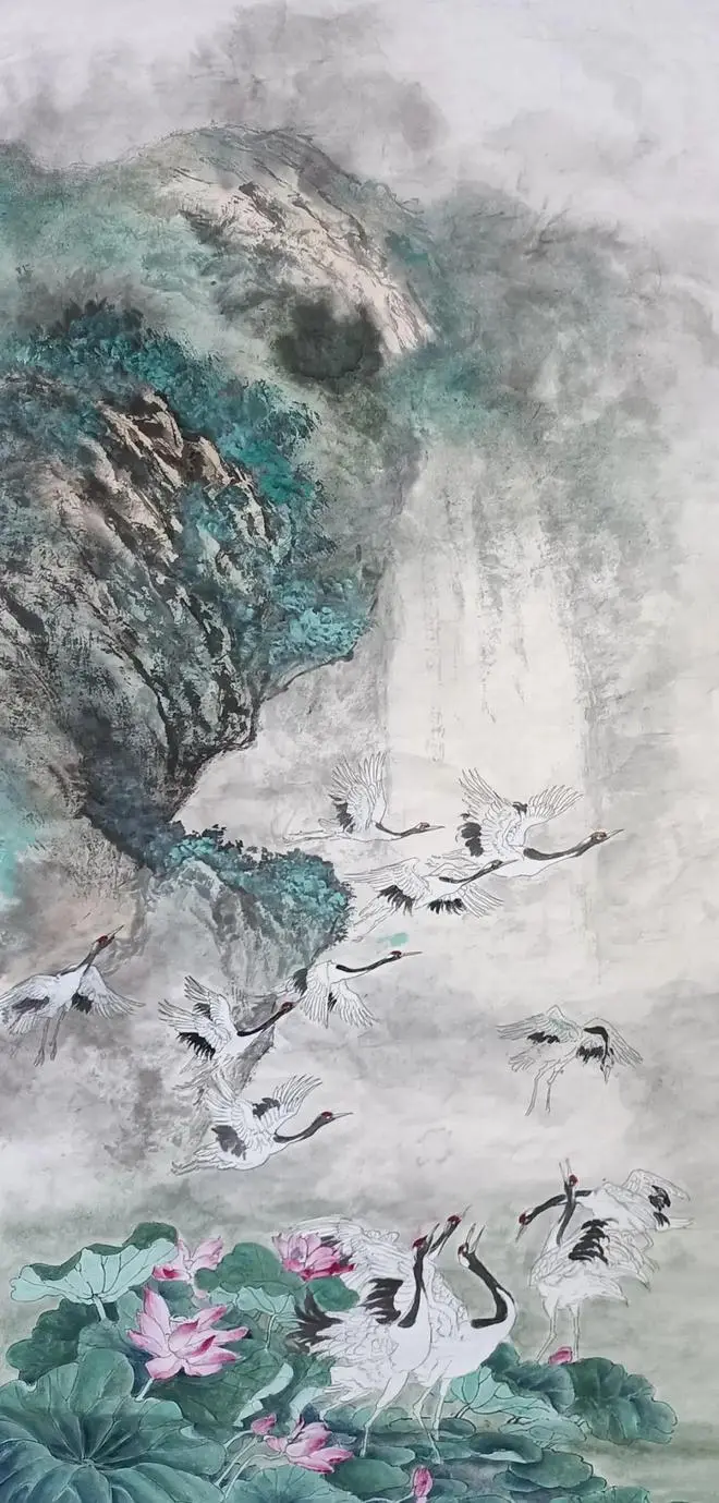 “翎境画”是融合工笔花鸟精微刻画与山水画宏大境界的一种当代探索,它创造了独特的审美体验。