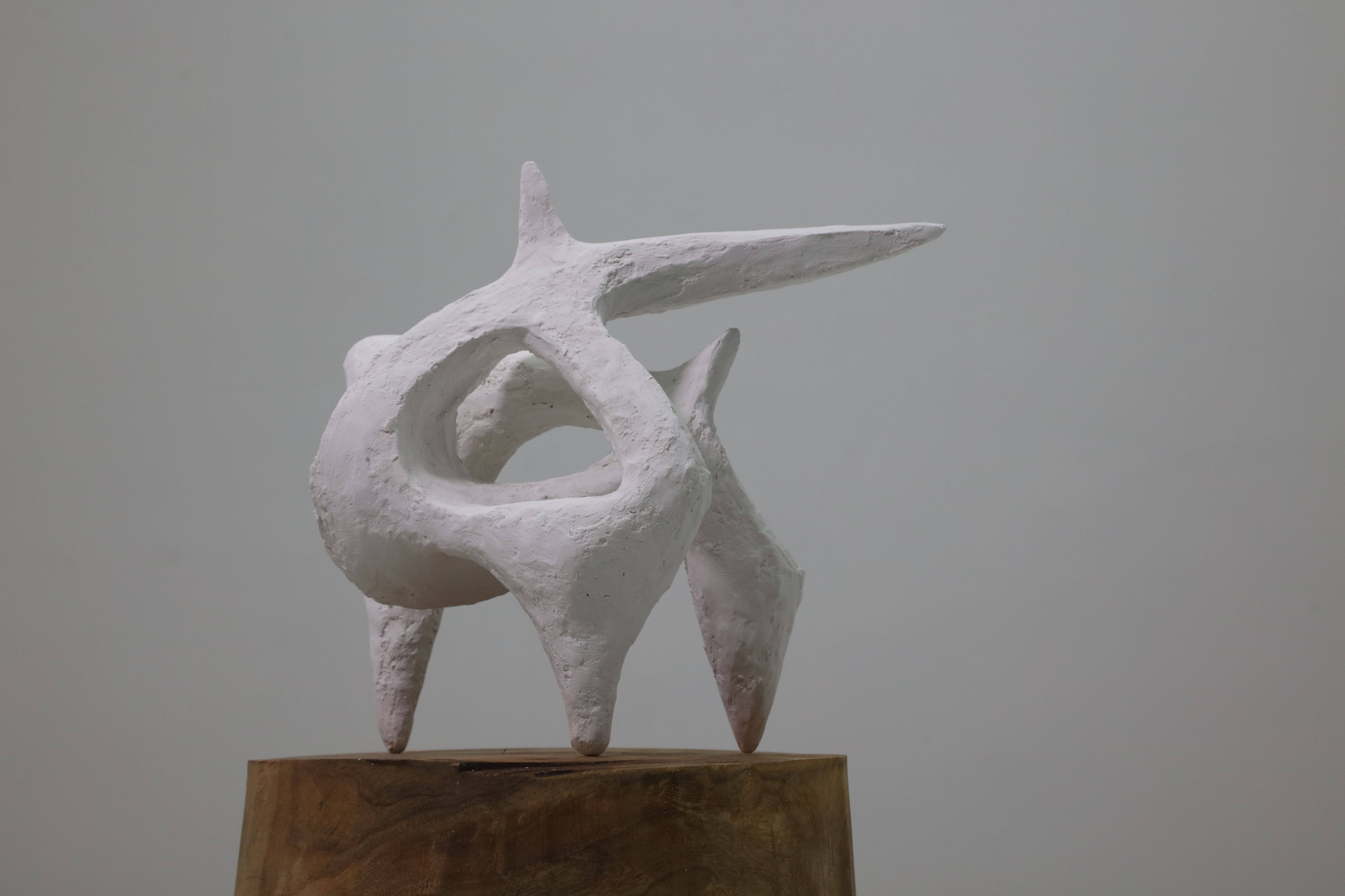 张宁, 《那喀索斯4》,34x37x22cm,石膏、木头,2025
