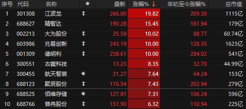 周末高度发酵下,资金先是兑现,存储板块早盘冲高回落,但午盘再度走强,江波龙逼近20cm涨停,兆易创新、德明利、大为股份涨停。