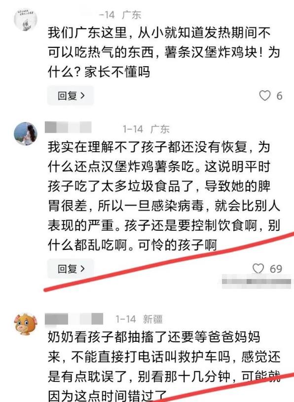 “当时很晚了,周围的餐馆都关门了,但孩子说饿,我就给点了一份外卖,有汉堡,炸鸡,薯条什么的,结果吃完过了两个多小时吧,孩子就突然开始浑身发抖.......”
