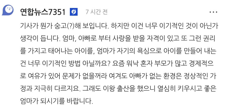 但李诗英毕竟是离婚后生的前夫的娃,而且还是没经过对方同意用的胚胎,这一点依然成了韩国民众争论的话题: