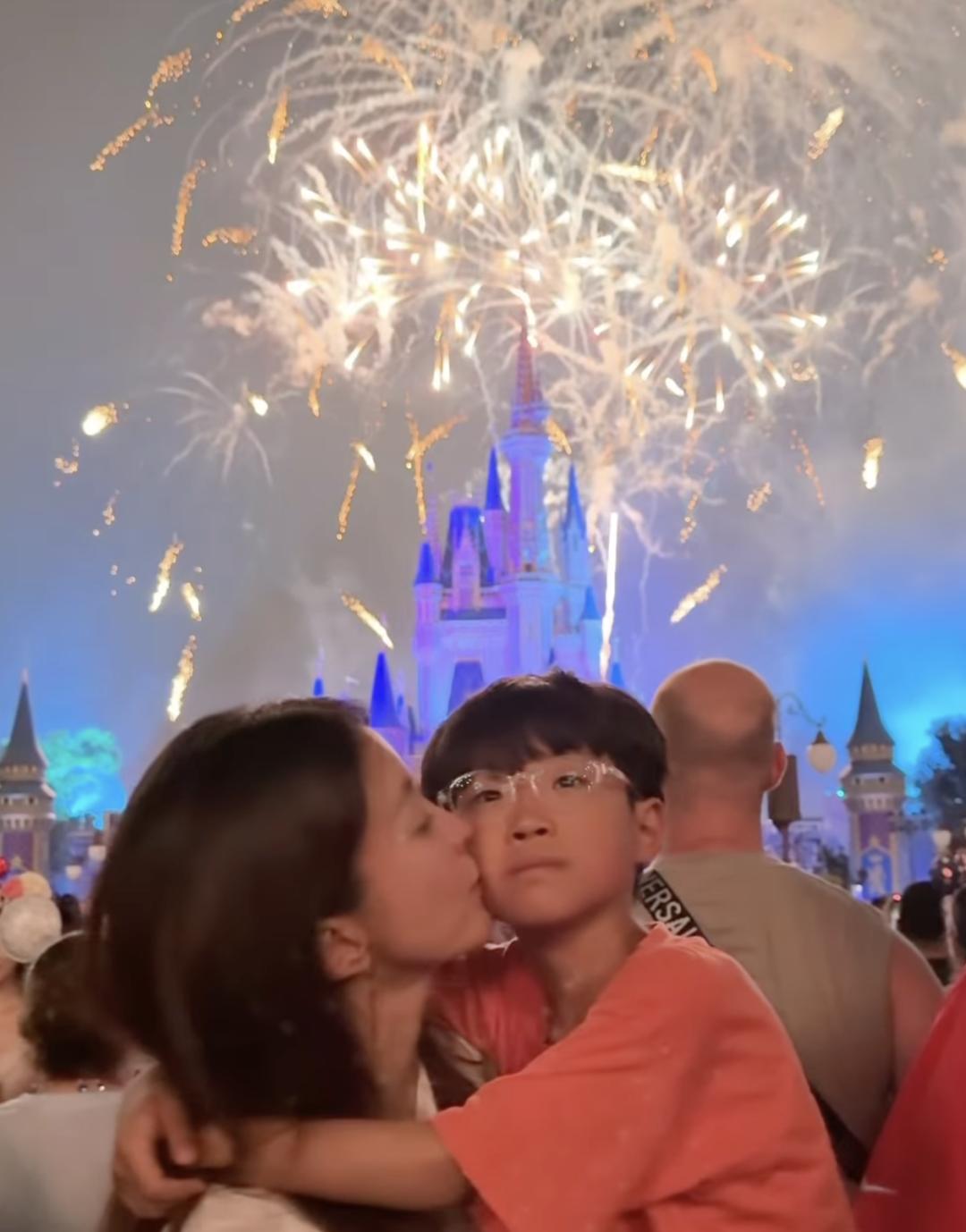 今年3月离婚后,李诗英也带着儿子去了不少地方。