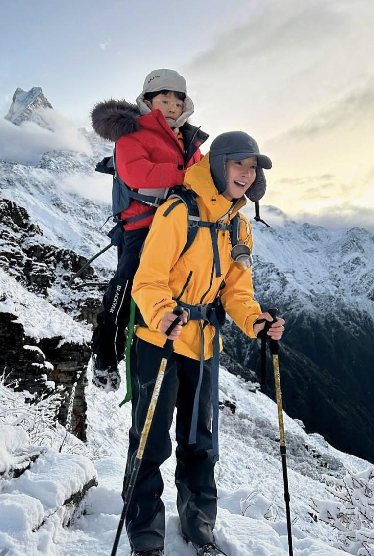 去年11月,她背着6岁的儿子,爬了位于尼泊尔的海拔4000多米的马尔迪喜马拉雅山。
