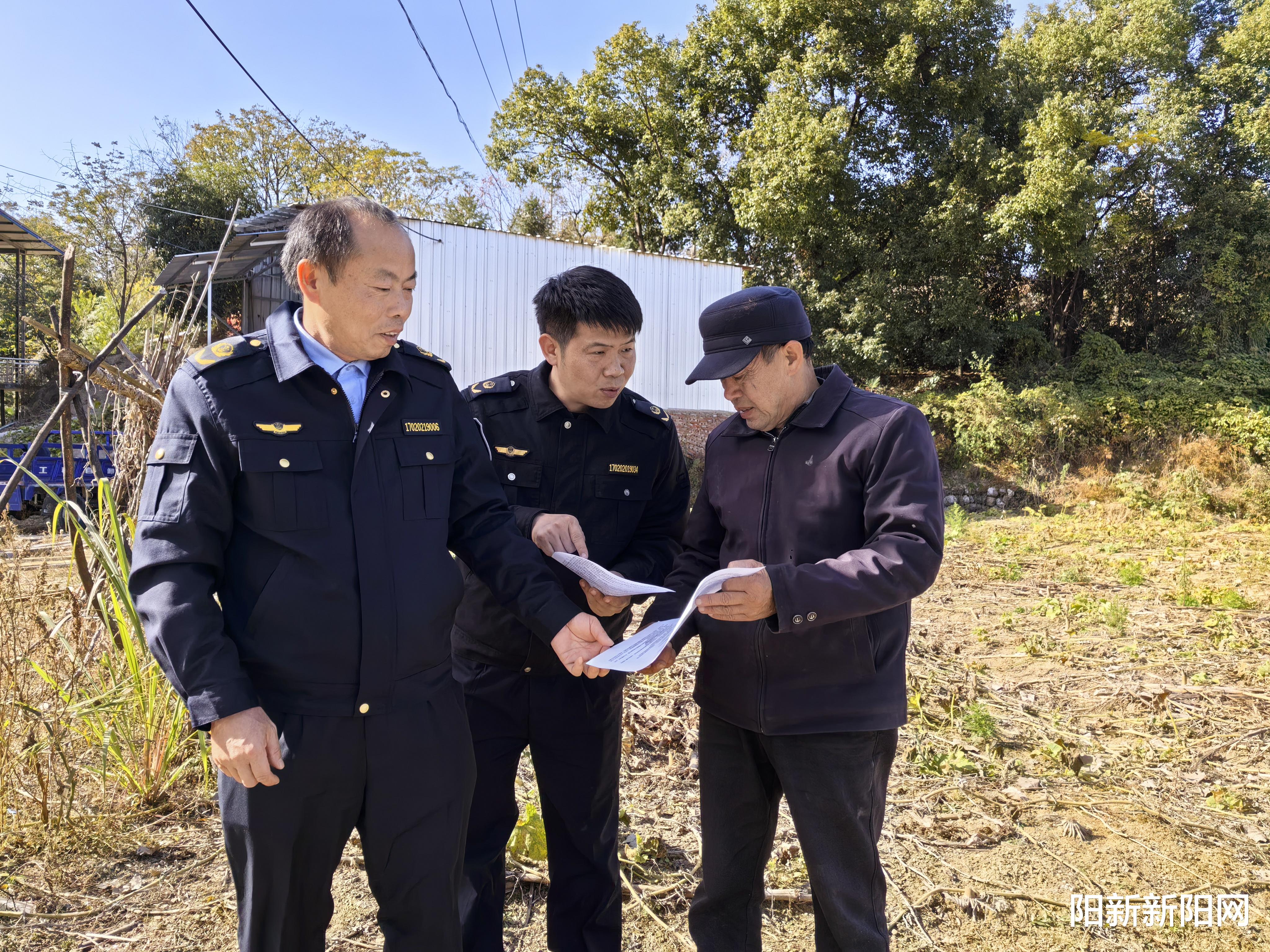 “乡亲们,这水是我们的‘保命泉’,污染水源不仅害家人,还得负法律责任。”11月25日,王英镇饮用水源保护区,县农业综合执法大队种植业中队的执法人员正拿着宣传手册,向围观村民掰开揉碎讲解护水知识。连日来,这支执法队伍穿梭在王英镇、三溪镇的水源保护区,以“立牌警示+田间普法”的组合拳,让“法治护水、全民有责”的理念走进千家万户。