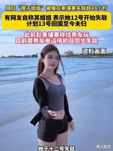 11 月 14 日,其姐姐注册 “橙子,你在哪里?我在等你回家” 账号,发布泪崩视频哭诉 “妹妹生死未卜”,母亲也在粉丝群梨花带雨求助,称 “普通家庭无力寻亲”,引发 58 万粉丝共情,# 柬埔寨网红失联 #话题阅读量超 8 亿次。