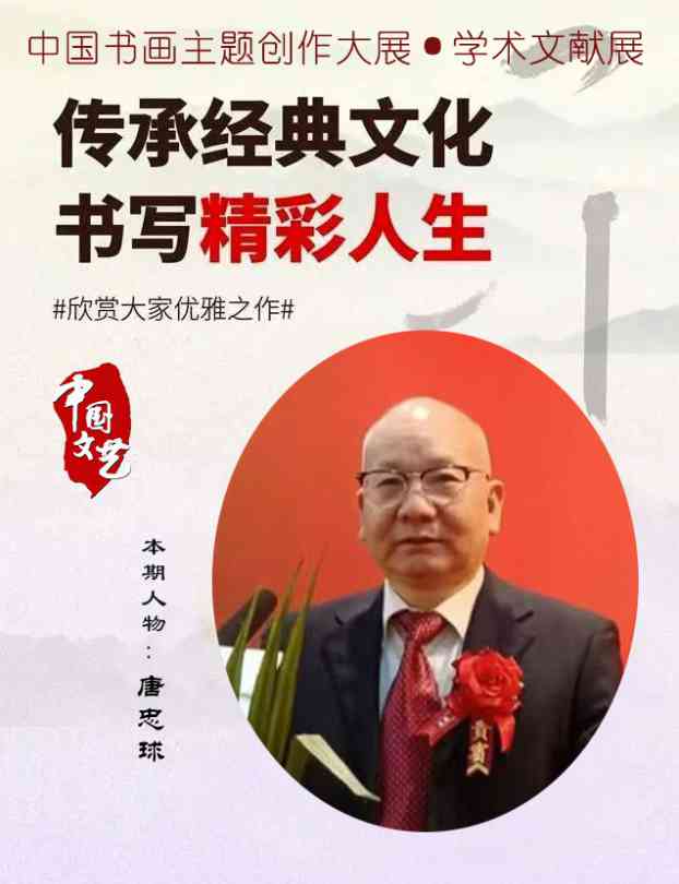 2025年创作书法作品《春节》参加《首届非遗中国年》我为春节代言活动。入选CCTV文化强国[唐忠球_中国人民艺术家]贺新春视频展播。入展环球旅游频道《文体璀璨 金蛇贺岁_2025携手世界冠军春节贺岁》活动。入展俄罗斯文化中心2025外交新春书画展荣获金笔奖和中俄文化交流使者荣誉称号。入选中国艺术家代表全球大拜年_马来西亚吉隆陂书画新春展播。入展泰国格乐大学《璀璨之路 笔墨生花》国际艺术展。入选中国东方文化研究会时代群像_当代书画名家线上展荣获金奖。书法作品《见贤思齐》获中国关工委教育中心湖南地区优秀指导师荣誉证书。2月被授予科罗拉多工程大学美术学荣誉博士学位证书。4月中央新影中学生频道时代强国栏目聘为艺术鉴赏首席专家。著名书法家唐忠球入编《读者》形象刊,展现艺术新高度。入编并题名中国艺术文献出版社《艺术经典永流传》传世名家收藏宝典。入展国家对外文化贸易基地第35届全国书画名家邀请展被评为优秀奖。书法作品《知否》入选第八届中国书法·兰亭书展。书法作品《野蛮其体魄 文明其精神》荣获故宫博物院永久收藏证书。应邀创作《生活不过葱姜蒜 文化更须纸墨笔》入展“纸韵千年 墨舞丹青”首届全国书画家邀请展。应邀创作《算法文化自信》入选瓷砖彩绘,“精忠报国 翰墨丹青颂英魂”岳飞艺术主题展。创作书法作品《文化中国》入选北京地铁艺脉传承主题巡展。入选2025百家百品中国当代书画名家大联展。入选百佳联展_2025中国当代书画艺术大联展。入展保利艺术博物馆第36届时尚经典·全国书画名家邀请展。入选《非遗文化》2025非遗之光_传承人的故事。入选“我们的中国梦•文化进万家”主题明信片宣传活动。在“第三届一带一路•国际出海合作论坛暨驻华外交官友好之夜”活动中所做的杰出表现和特殊贡献,特授予“一带一路文化交流大使”。入选《中华英才》半月刊官网艺海名家_唐忠球书法家作品赏析。入编《中华英才》纪念抗战胜利80周年阅兵特刊。入编中国文化出版社古籍典藏线装版《中国书画通史》并特邀艺术顾问。入选2025第七届伦敦艺术双年展推荐艺术家。2025年9月入选《世界级艺术名家教材档案》收录了视频以及经典作品资料。作品《文化中国》在“迎国庆76周年”全国书画大赛作品展中荣获金奖。作品《天道》在《国家记忆》_看今朝艺坛数风流人物全国书画大赛作品展中被评为金奖。10月荣获中国艺术文化交流伟大贡献奖。2025年10月巴黎美院永久收臧书法作品《雄关漫道真如铁》,并加入法国美术家协会会员。入编中国文化出版社《世界艺术巨匠大辞典》。入展中国书画家联谊会第二届规范汉字书写大展。