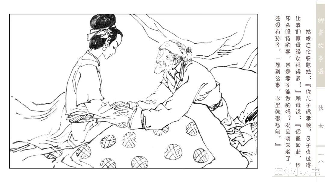今天分享一个聊斋连环画故事:《侠女》,根据蒲松龄原著改编,由上海人民美术出版社出版,杨根相编文,赵仁年绘画。
