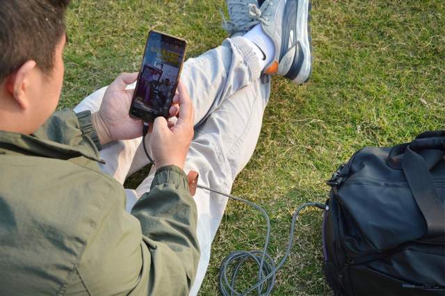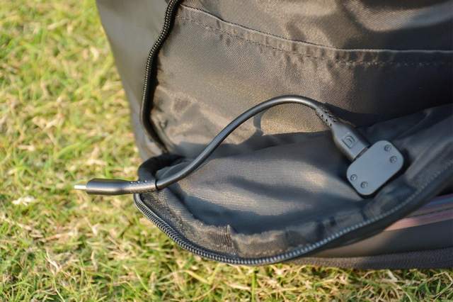 说一个,你还觉得超赞的设计,即位于包包的右侧边,还设计有自研的100W高功率充电接口。里面放置供电的充电宝,外面直连充电线后,并可开启高效快充,玩出游玩一旦遇到电量焦虑,即插即用,就不用慌里慌张的去找充电宝了。