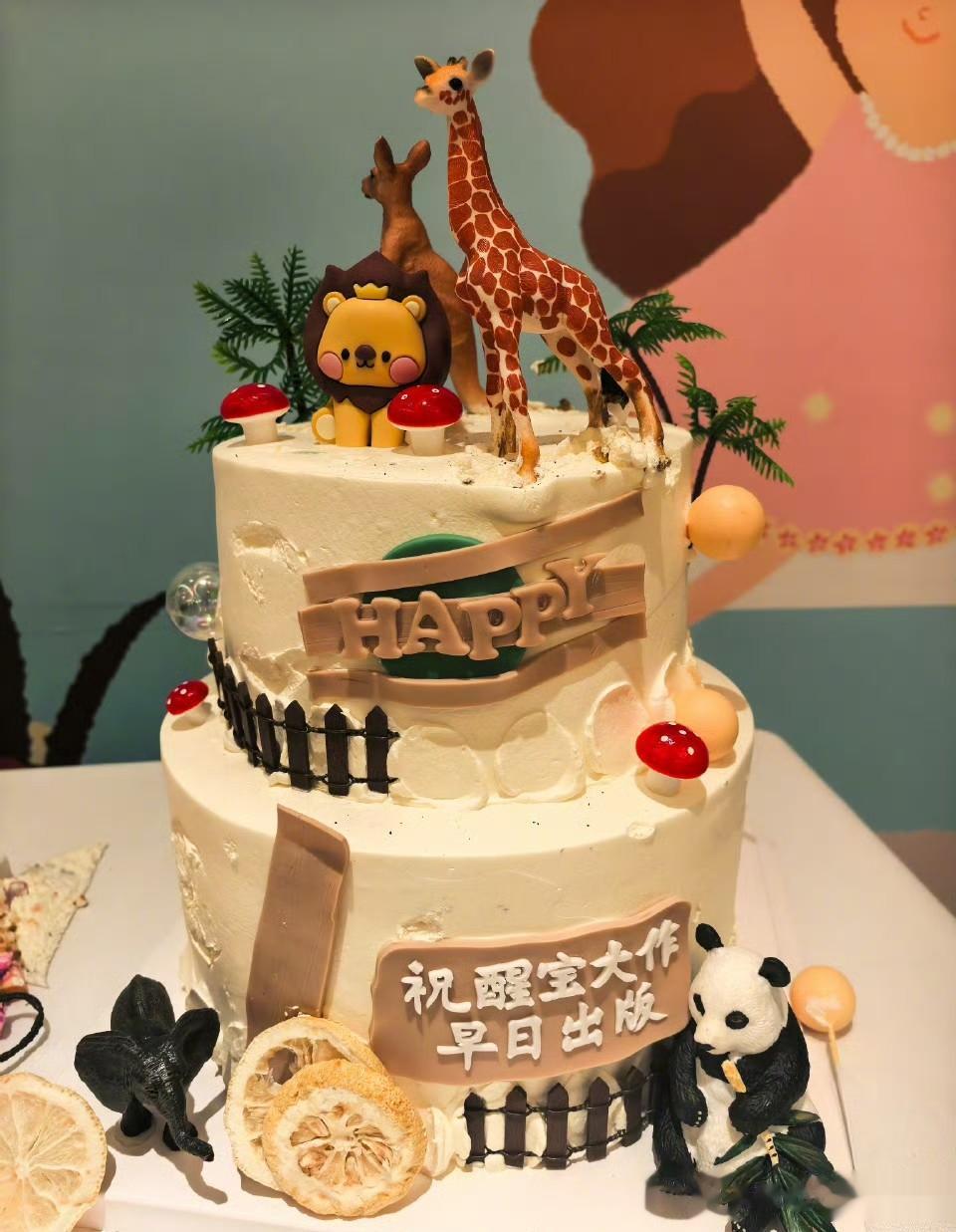 从醒醒的生日蛋糕能看出来,这本像绘本的读物应该是醒醒的作品,今天的生日主题也是以书上的长颈鹿为主,不过目前还是样书没有出版。