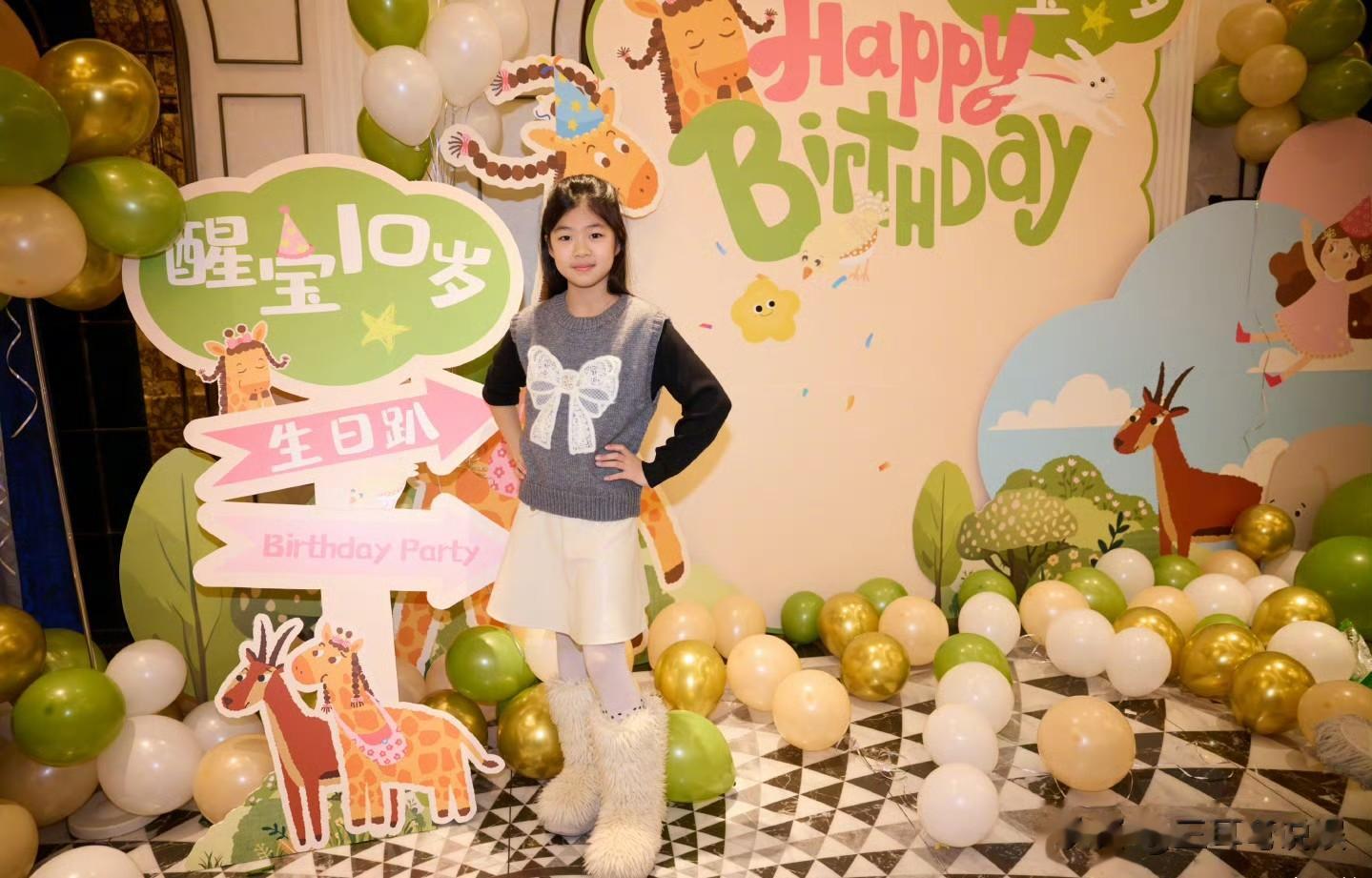 章子怡晒出了昨晚女儿生日派对上的画面,现场布置的生日氛围浓郁,一个大的立牌写着醒宝10岁生日趴。