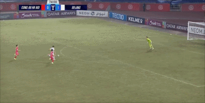 第27分钟,场上出现争议判罚。河内球员传中打在江文豪身上,裁判判定手球并处以极刑。慢镜头显示皮球并未明显触臂。国安门将张健智侧扑将阿图尔的点球拒之门外,力保半场领先优势。