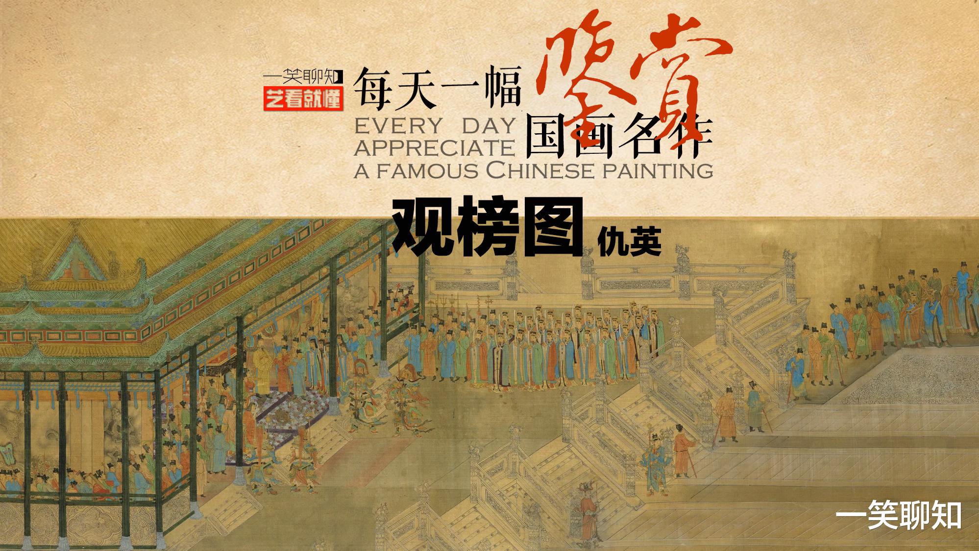 《观榜图》设色绢本,描金,34.4x638厘米,描绘了科举放榜,举子们观榜的盛况,现藏于中国台北故宫博物院。