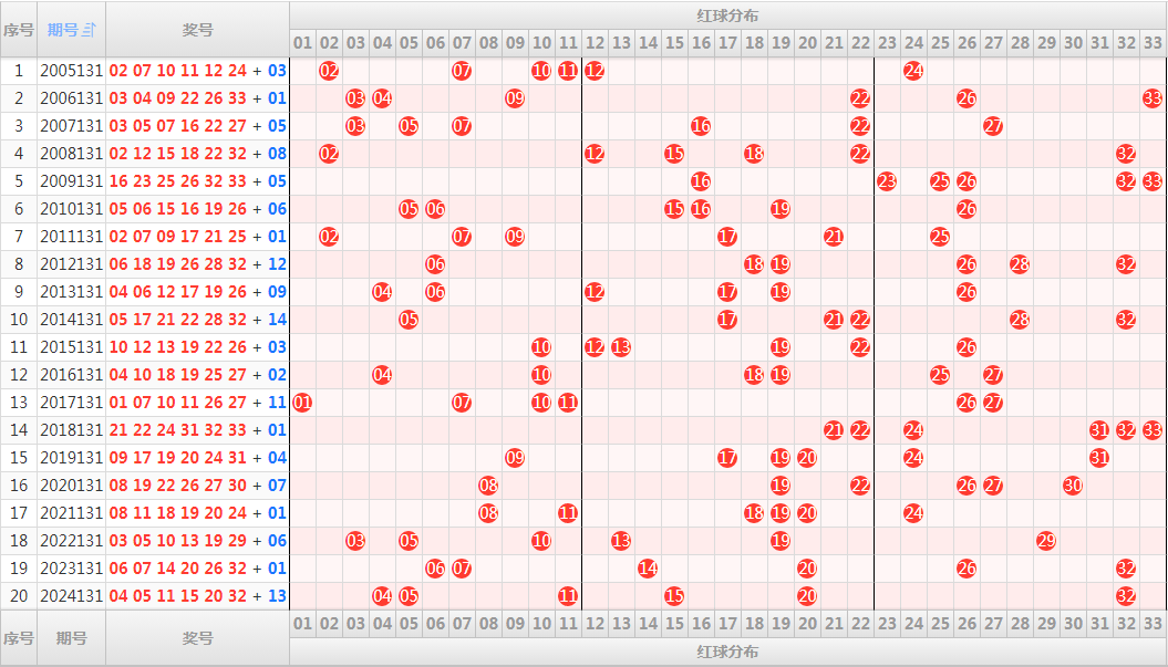 六、历史同期,红球开奖号码和走势图(历史数据演示):