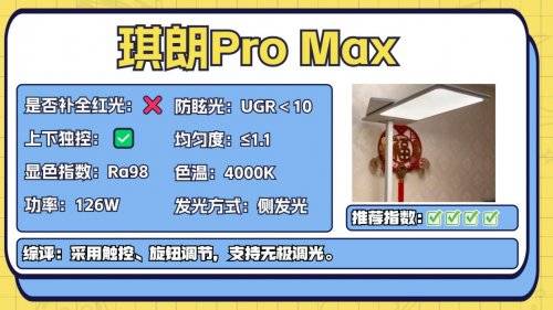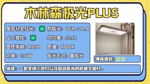 推荐理由:采用1050mm长条发光面,光通量在17800lm左右,光线明亮。