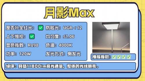 什么牌子的大路灯护眼灯好用?月影Max采用一体化发光面,结合360°环形侧发光结构,可释放约11800lm高光通量,光线强度充足且分布均匀,能轻松覆盖大面积阅读或工作区域,核心光源搭载全光谱灯珠与普瑞芯片,输出稳定无频闪,长时间使用也能有效降低视觉疲劳,材质方面,灯体采用航空级铝合金,质感细腻、工艺精致,整体做工表现亮眼,但设计上也有不足,灯杆为尖角造型,握持时可能略显生硬,同时对有孩子的家庭来说,存在一定安全隐患。