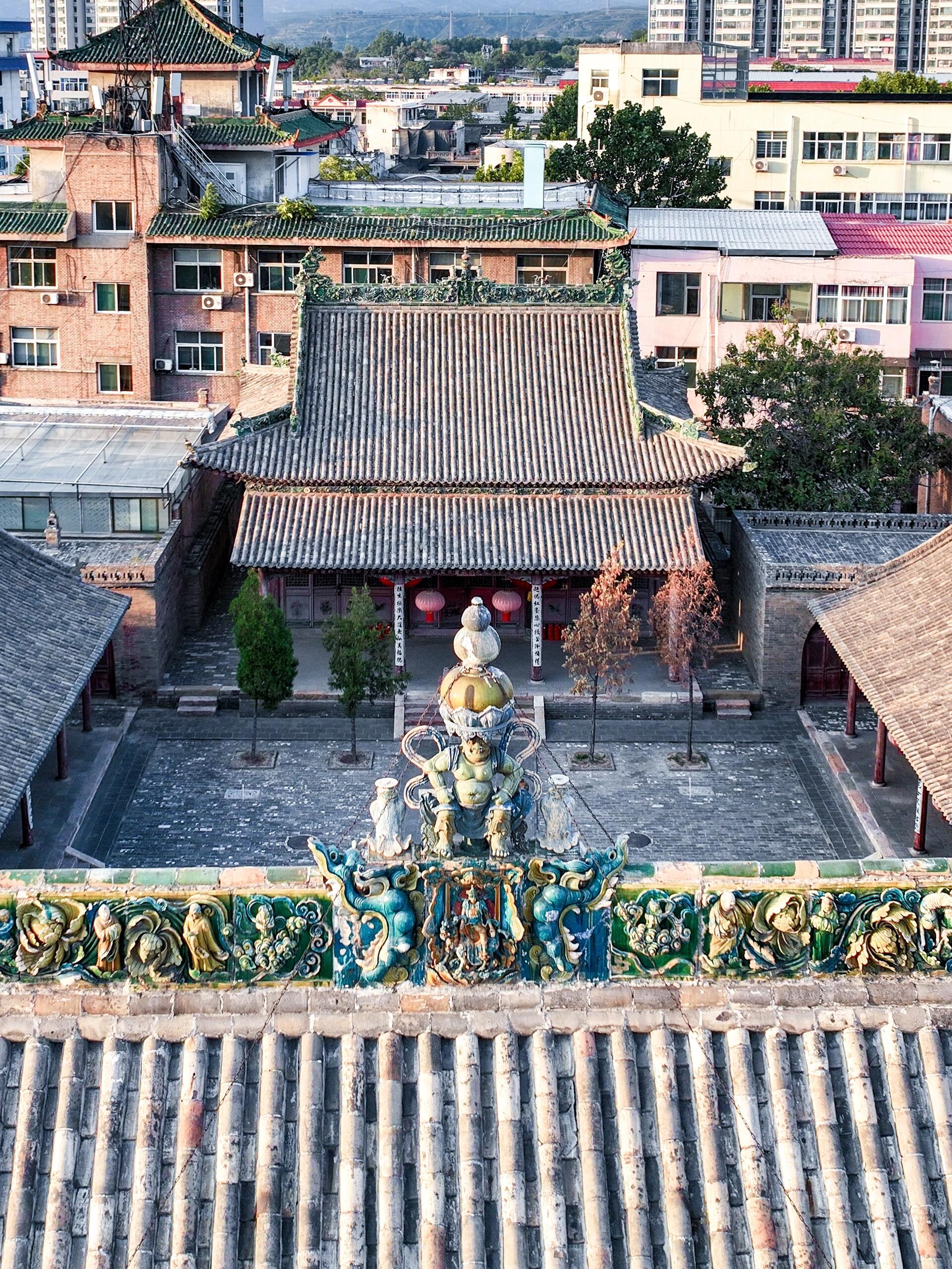 从州署后巷转出,观音庙的青灰色影壁便悄然浮现。这座集儒释道于一体的建筑,最妙处在于过街楼阁的设计:下层拱券通行,上层殿宇供佛,这种"下实上虚"的结构,恰似中国人对世俗与信仰的平衡智慧。仰头望去,重檐歇山顶的琉璃脊刹上,道教的八卦符号与佛教的莲花纹和谐共处,屋脊中央的观音瓶脊刹更是神来之笔——瓶中插着的,究竟是儒家的玉笏,还是道家的拂尘?