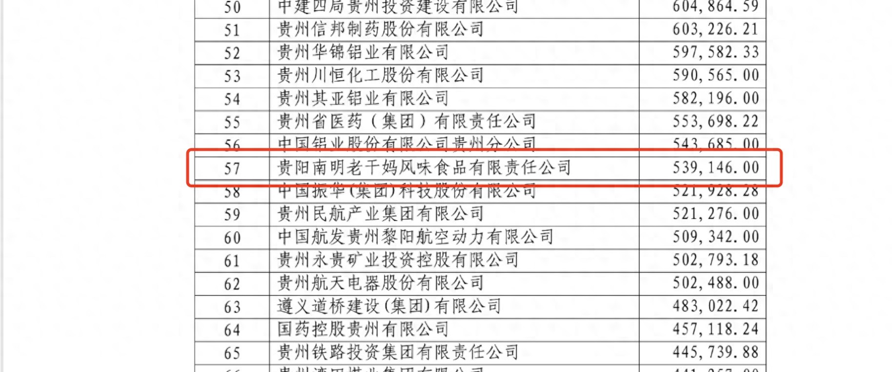 “2025贵州企业100强”榜单显示,老干妈2024年实现53.91亿元营收。 贵州省企业联合会官网截图