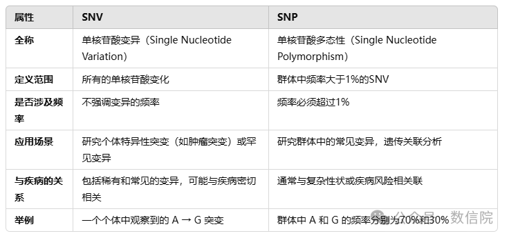 1.SNP是SNV的一个子集,但它更强调在群体中的频率。