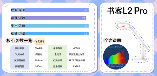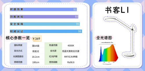 除了核心光技术,书客L1还具备定时休息、夜灯模式、手扫调光等实用功能。在品质层面,它历经护眼效果、严苛环境、极限稳定性及光线分布四大维度测试,从光学表现到结构可靠性都经过系统验证,每一个细节都围绕“长期安心用眼”这一目标展开,整体完成度在同价位中尤为突出。