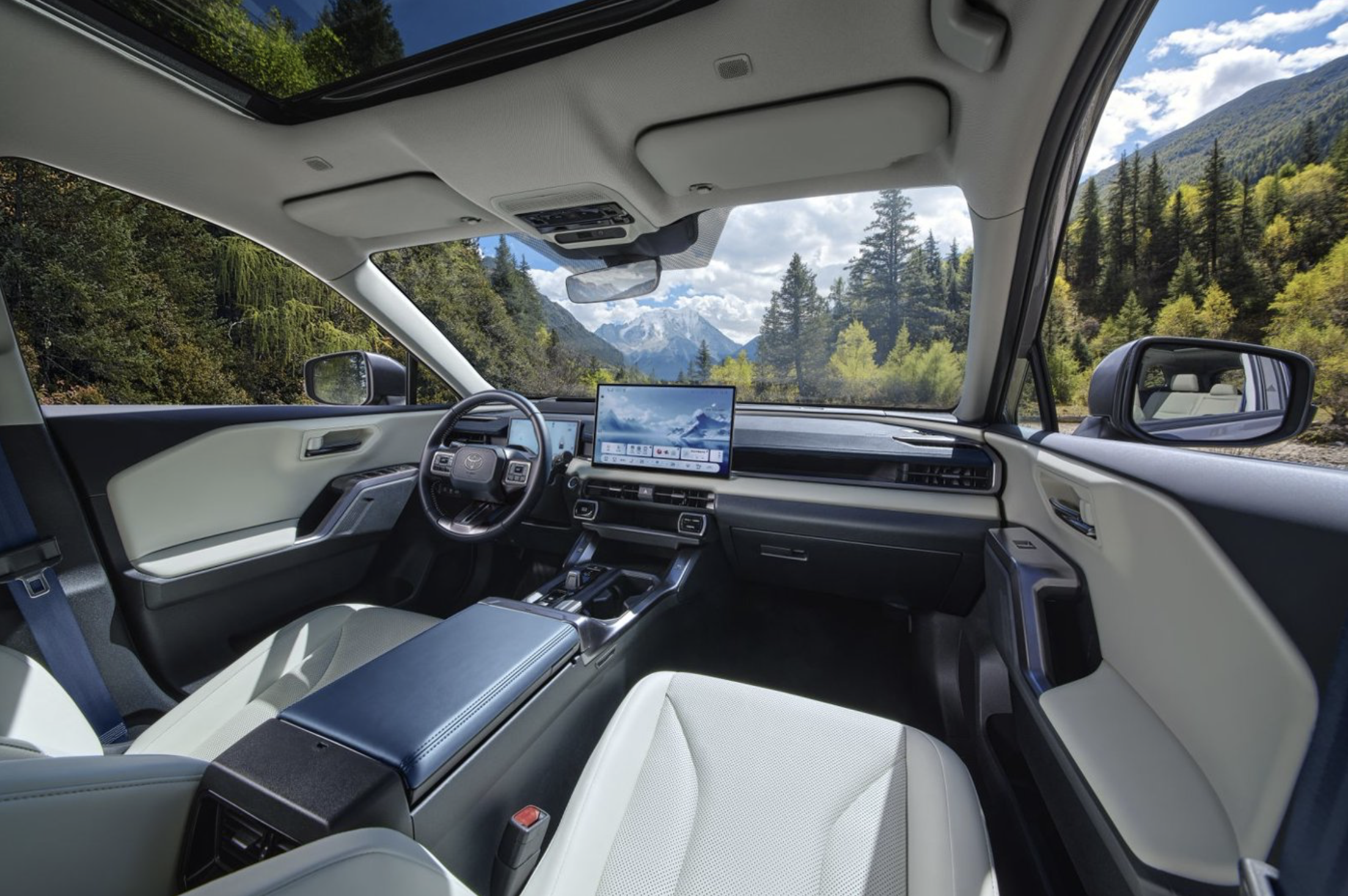 全新的威兰达对于车内也好不吝啬,环抱式的座舱采用了黑白双色的经典搭配,大面积真皮皮革和搪塑工艺材质的铺陈,车顶还加入了米白色植绒面料的包裹,十分地彰显档次。该车将会搭载广汽丰田中国团队自行研发的科技感座舱,通过采用了域控制电子电气架构,从最基础的底层重构油车的智能驾驶体验,让该车能像电动车一样可以深度OTA升级。标准的T字形中控台配备了12.3英寸全液晶仪表、15.6英寸超窄边框悬浮中控液晶屏与HUD抬头显示系统,构成三屏联动的智能交互矩阵,带来了最直观的视觉冲击力。内置了高通骁龙8155芯片组,鸿蒙生态预装26款常用APP,支持四音区语音识别系统,甚至还可以通过手势动作操作多媒体。该车还配备了OMS智能座舱感知系统,通过摄像头感知乘客的状态和情绪,进行主动的关怀和提示。
