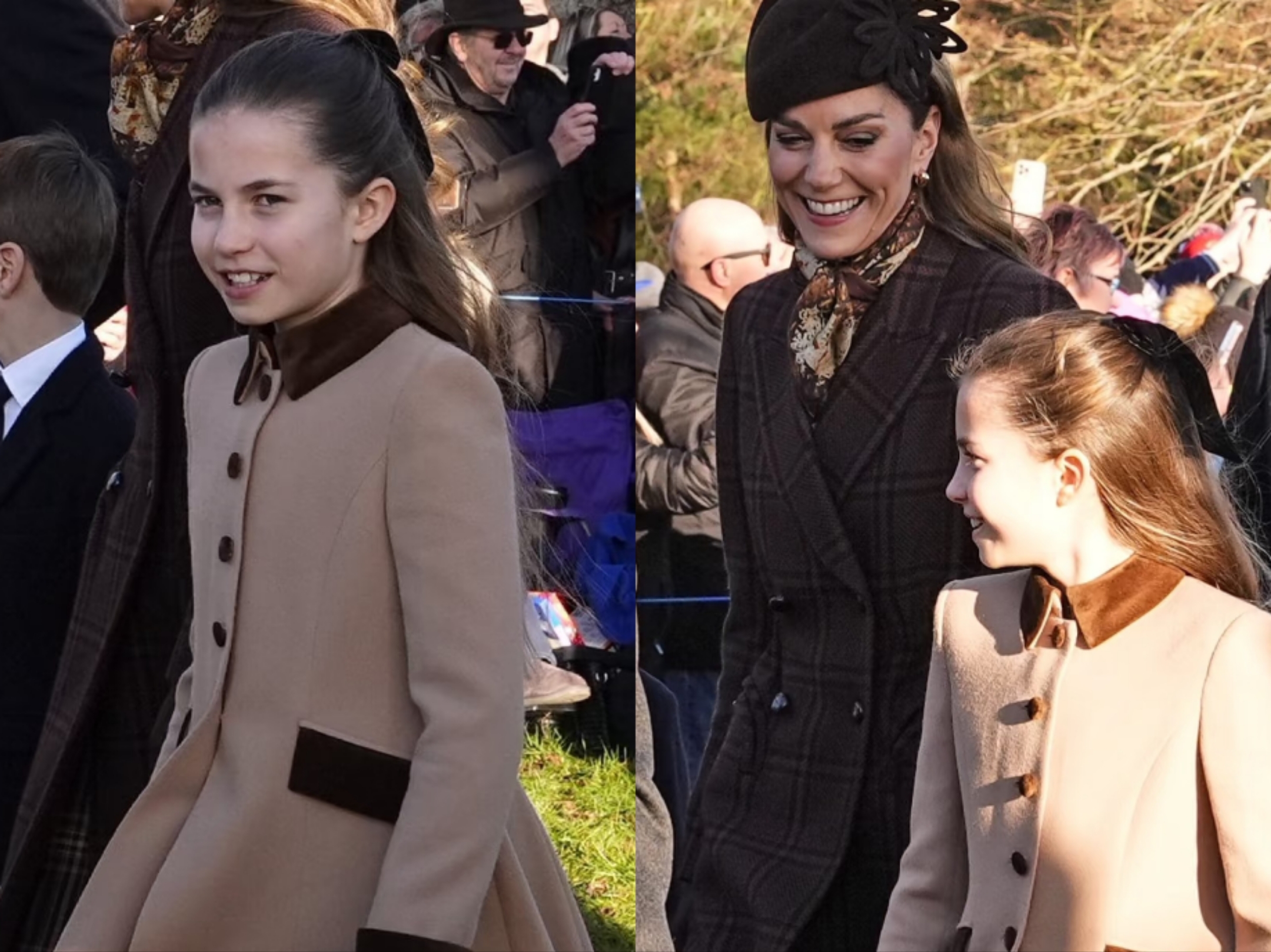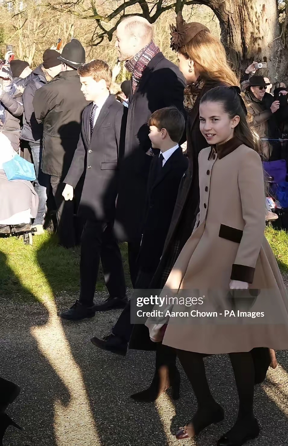 夏洛特公主则换上了新添置的卡其色大衣,搭配黑色丝袜和一双同色系玛丽珍鞋,以及标志性的公主头和蝴蝶结,看上去落落大方、自信从容!