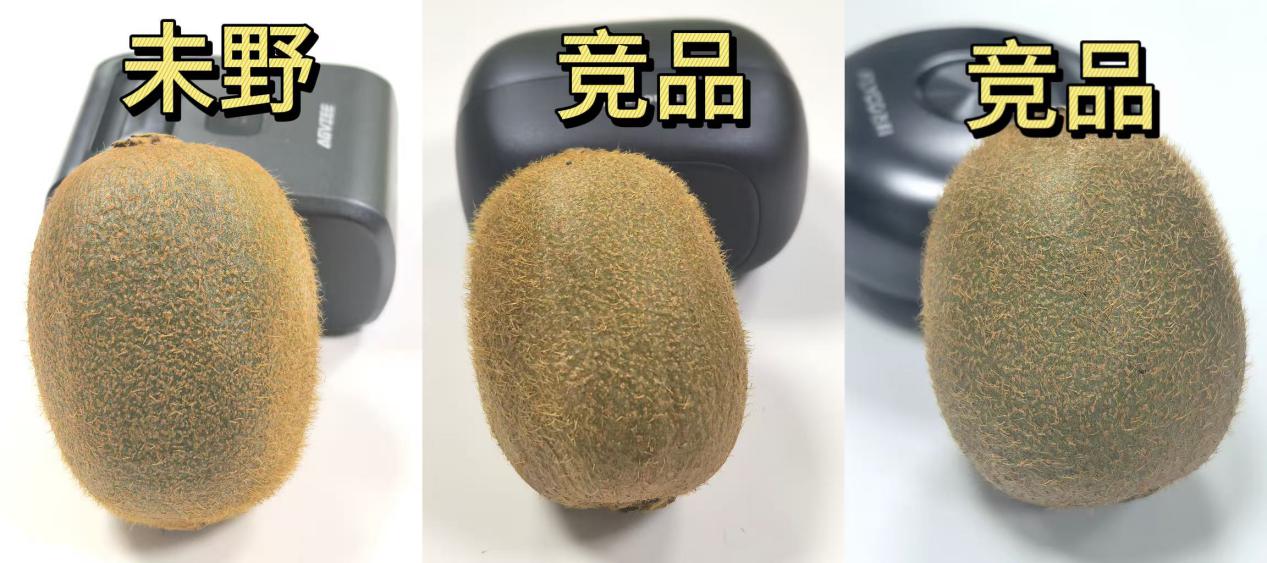 结果很明显,未野往复式mini剃须刀剃须的这个猕猴桃表面的 “绒毛” 被剔除得非常多,比两个同价位的竞品表现都好。