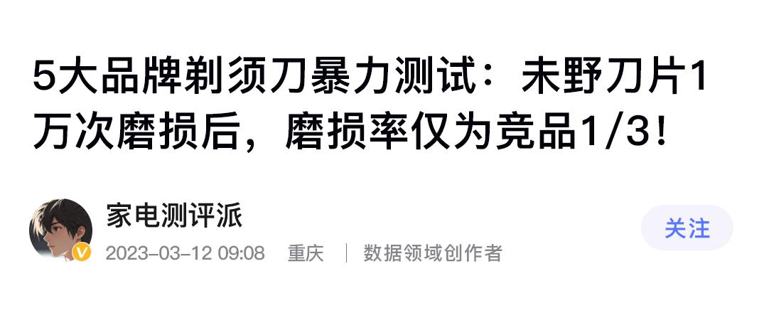 为什么要选择这款剃须刀呢?第一性能足够强悍,价格也比较合适;第二体积小巧,适合出差携带;第三未野是一个极限运动品牌,朋友也在用,品质值得信赖!