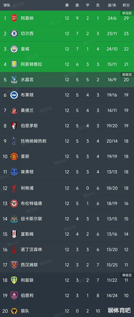 北京时间11月25日,随着曼联0-1不敌埃弗顿,英超第12轮的比赛全部结束,我们一起看看最新积分榜变动!英超最新积分榜红