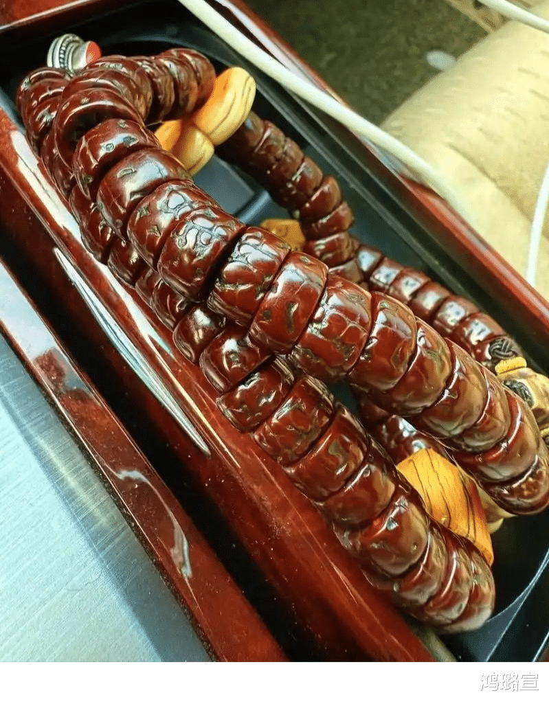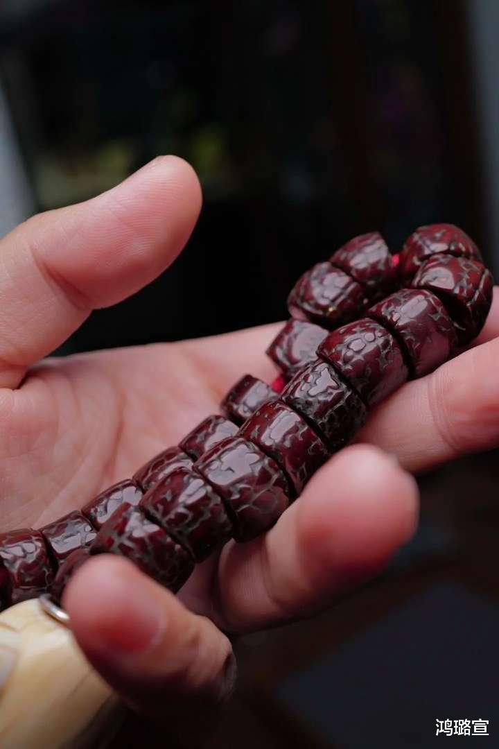 文玩菩提子大部分的品类最后的颜色都是深红色,也就是常说的枣红色,并且年份越长颜色越深、越红!而上油之后的颜色其实也是这种颜色,只是因为油脂充盈这种颜色会更深几个色号罢了!而走色失控的说法其实并不是没有道理,油脂过多会让文玩变色加速,由浅变深的进度也会加快,这便是所谓的“走色失控”,简单说就是“变色的进度停不下来了!”。
