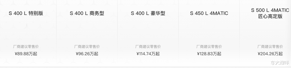 日前,笔者从梅赛德斯-奔驰官网获悉,2026款奔驰S级现已正式上市,官方指导价格区间89.88万-204.26万元。作为常规改款版本,2026款奔驰S级引入S 400 L特别版作为全新入门车型,S 450 L 4MATIC的定价由134.32万元下调至128.83万元,其余车型的官方指导价与2025款车型保持一致。