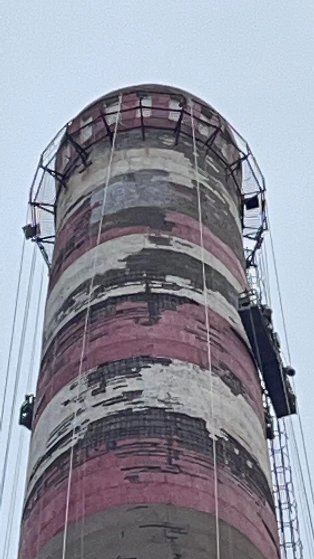 2. 安全与技术准备隔离与警示:烟囱底部 30 米范围设置双层硬质隔离区,悬挂 “高空作业、禁止入内”“防腐施工、注意防尘” 警示标识,夜间布设红色警示灯;作业区域下方铺设防坠物防护棚与防尘网,外侧满挂密目安全网;
