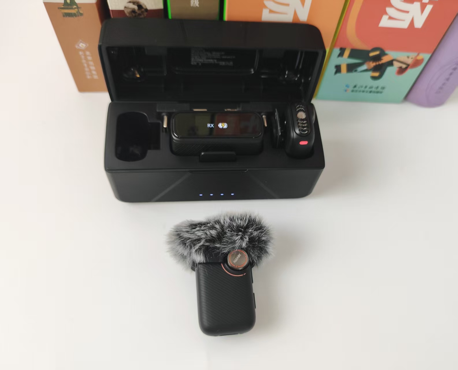 这款麦克风所配备的充电仓,不仅能够提供长达24小时的全天候续航,还是一个能将接收器、发射器、转接头妥善收纳其中的精致盒子。仓体表面采用复合材料打造,呈现出细腻的磨砂质感,握在手中,触感极为舒适。