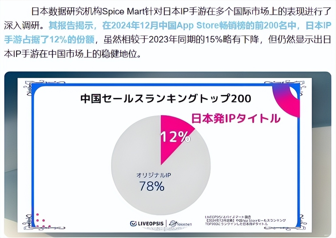 而如今这些却慢慢的出现在了手机里,甚至还有人还把它变成了一条赚钱的流水线,2024年的数据显示,日本手游在中国市场占了12%的份额。