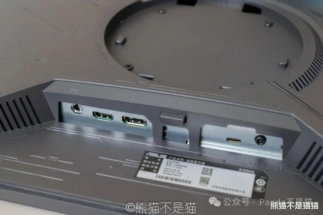顶部是我特喜欢的 1/4 螺丝接口,华硕好多显示器系列都有这设计,能用来安装相机、补光灯或者麦克风这些配件,在直播啥的场景里非常实用。