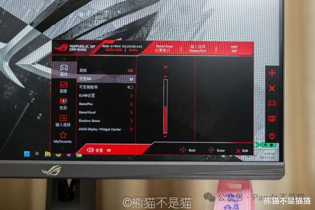 可变OD调节,现在差不多算是电竞显示器的标配了。它能让显示器在帧速率波动的时候,动态改变响应超速设置,从而得到最佳效果。一般来讲,大概是5档或者10档调节,而绝梦25这儿设置了20级的调节范围,这样就能得到更好的精细度。