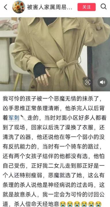 更令人愤怒的是,事发至今已经将近三个月,凶手却因被鉴定为精神病,仍然没有得到应有的惩罚。