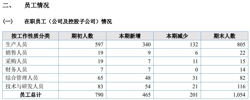 不仅如此,《审核问询函的回复》第238页披露,2022年和2023年公司的直接人工成本对应的人工数量分别为559人和810人。而另一边,新富科技此前发布的2023年年报则披露,2022年和2023年的生产人员为597人和805人,均与《审核问询函的回复》公布的数据存在差异,且呈现一增一减的不同差异方向。