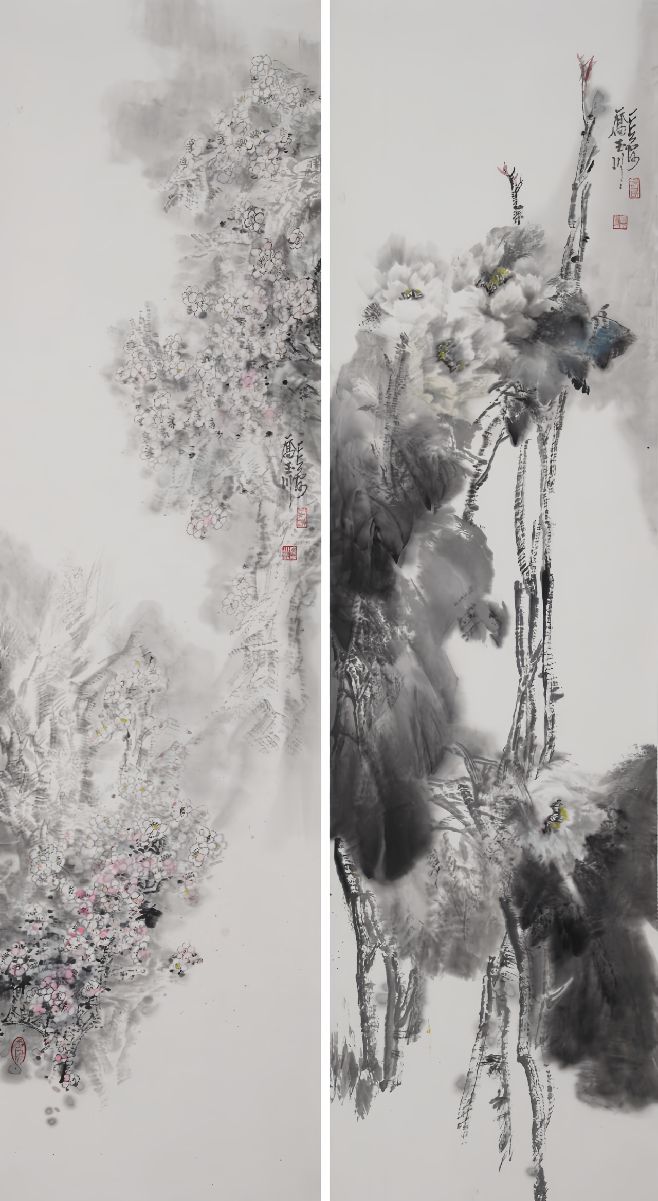 乔玉川《花鸟画四条屏之二》180cmx40cmx2
