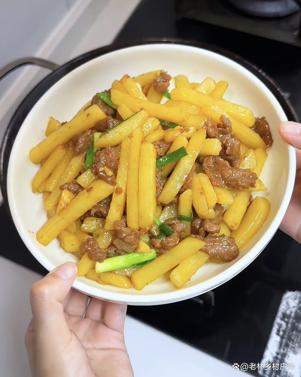 牛肉炒土豆更绝,上桌不到10分钟必定光盘行动,因为牛肉鲜嫩入味,加入土豆粉糯,真的太好吃了。