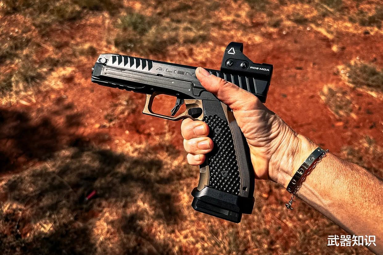 外观解读:一把真正的“外星枪”。它拥有全球最低的枪管轴线,其套筒设计颠覆了所有传统手枪。顶部是固定导轨,下方是非传统的运动套件,线条充满机械和科幻的张力,代表了手枪设计的未来方向。