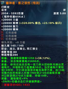 20000力量加点,急速1250!攻强23400点,我的天!这把橙斧给战士那不无敌了!