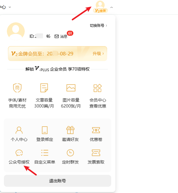 第二步:在个人中心中找到【微信公众号】-【自动回复】。