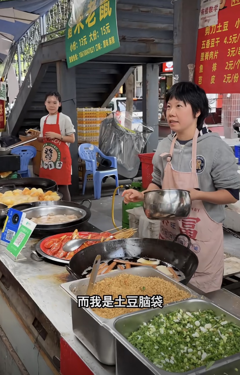 恩利还路过了一家炸土豆的店,这个店主长得挺眼熟的,第一眼还以为是王菲的女儿窦靖童呢。后来仔细确认,才发现人家不是明星客串的,就是小摊贩的店主。