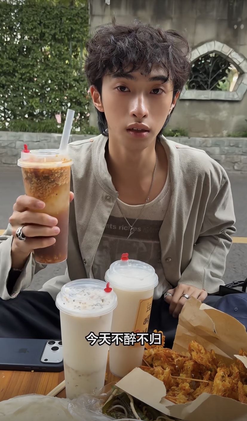 他还尝试了麻辣兔头,不过恩利说自己更喜欢五香味,他不是很能吃辣。看恩利的长相很精致,眼睛那么明亮、睫毛浓密细长,一头卷发显得他格外洋气,手上的戒指也增加了时髦范。