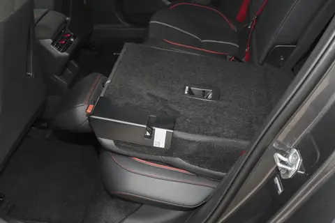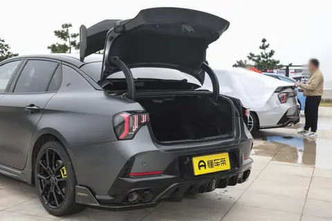 车身侧面线条流畅舒展,4700mm的车长在紧凑型轿车中颇具优势,从B柱开始缓缓下压的溜背造型,不仅优化了空气动力学,更赋予了车身一种蓄势待发的动感。试驾车配备的18英寸轮毂样式硬朗,与之搭配的红色涂装刹车卡钳更是点睛之笔,无声地强调着其运动基因。值得一提的是,在一些版本上,你还能找到诸如碳纤维材质部件等细节装饰,这些元素并非浮夸的堆砌,而是为了进一步降低车重和强化运动氛围,对于追求个性的用户来说,颇具吸引力。