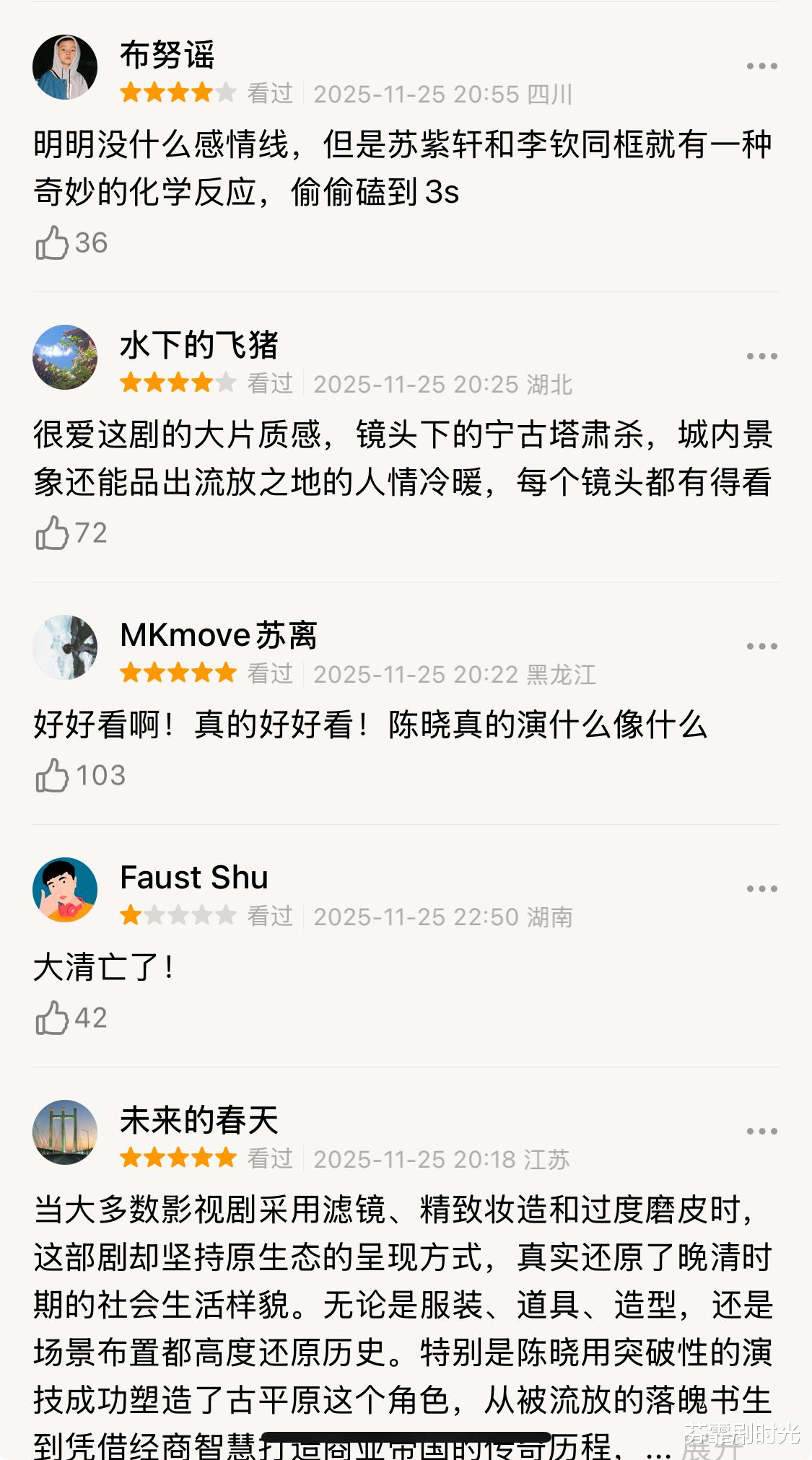 从观众整体的反应来说,目前对剧的评价以好评为主,但毕竟剧才播出了四集,希望剧情可以保持这样的节奏,做一部真正的好剧。