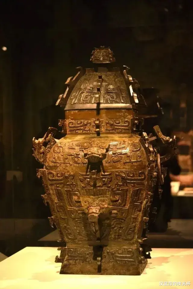 通高八十四点八厘米的皿方罍静静矗立,器盖的八字铭文与器身的六字铭文相互印证,诉说着皿氏家族为父铸器的虔诚。云雷纹打底,兽面纹威严,夔龙纹灵动,集立雕、浮雕、线雕于一身的工艺,堪称商代青铜铸造的巅峰之作。这位 “方罍之王” 曾在农家屋檐下装过咸菜,在异国展厅里承受过异乡人的打量,如今终于在故土安身。