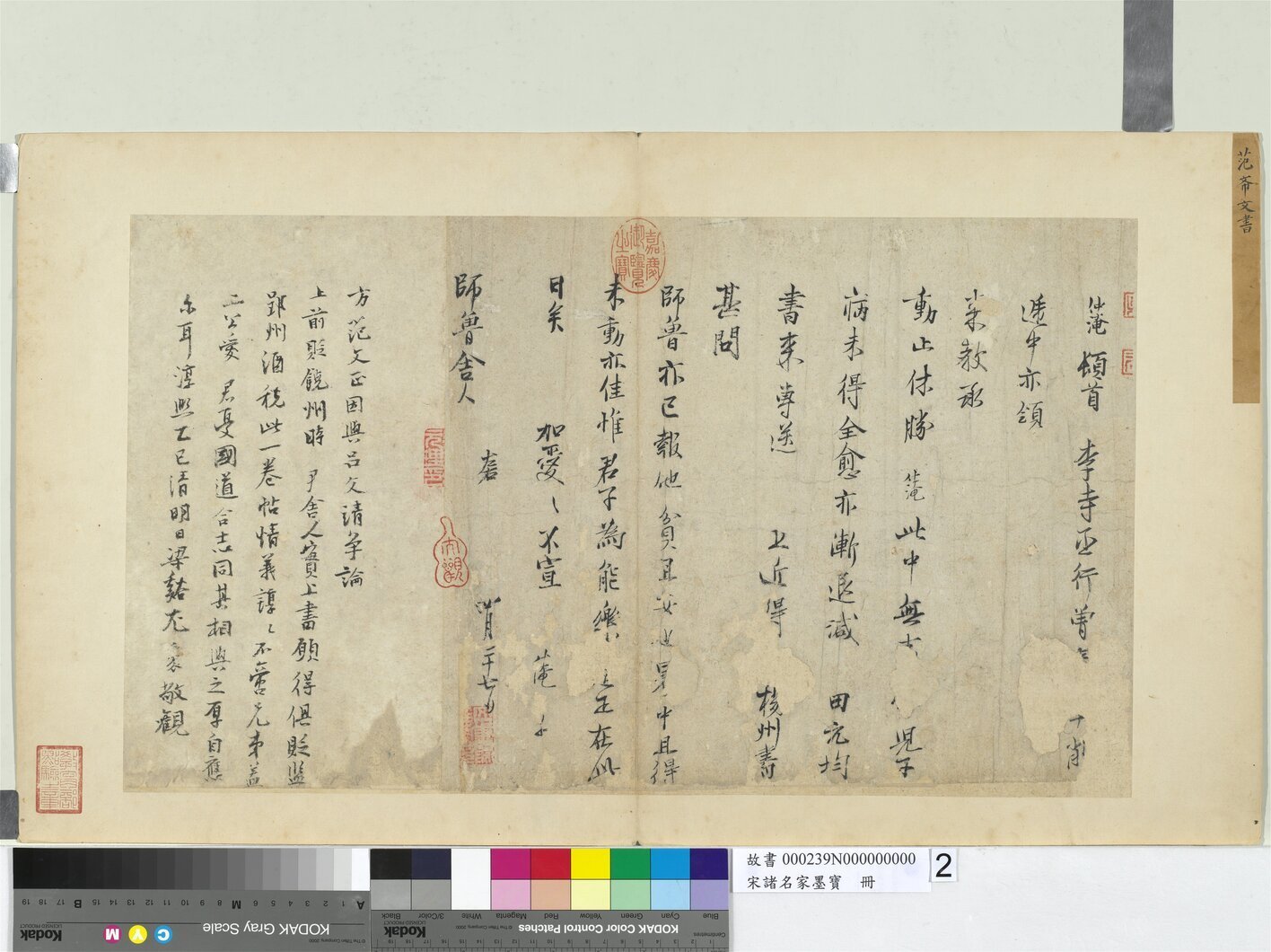 范仲淹《师鲁帖》,又称《与尹师鲁札》,纸本,纵32.8厘米,横39.2厘米;跋纵32.8厘米,横18厘米。现藏于中国台北